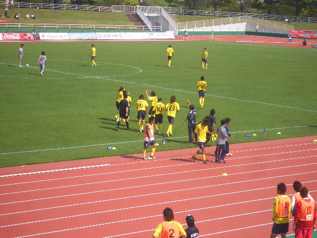 うれしいなあ。久々に目の前で勝利を見届けた。リーグ戦の白星を見たのって、結構久々だよなー。と、振り返ると、おやっ、昨年7月の三菱水島戦が最後だったのか。昨年はやたらと、引き分けばっかり見てきたからなあ。今晩は反省会をせんでいいぞ。