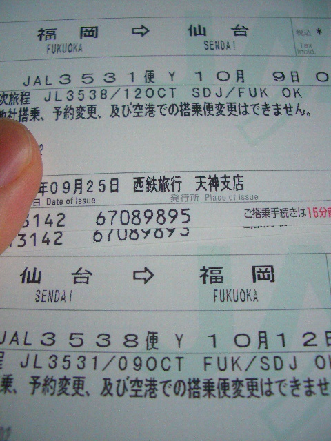 地元の旅行代理店「西鉄旅行」のパック商品で、ホテル1泊と往復航空券で50800円也だった。妻と2人で計10万円超か・・・。秋の行楽シーズンということもあって、5月に行った時よりも高い気がするな。せっかく大きい出費をすることだから、東北観光をしてこよう。盛岡競馬にも行ってみたいし。
