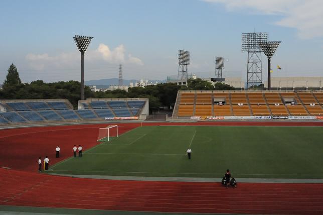 初めて来た西京極。昼間の京都は鬼のような暑さだったが、夕方になると風も出てきて、だいぶしのぎやすくなった。