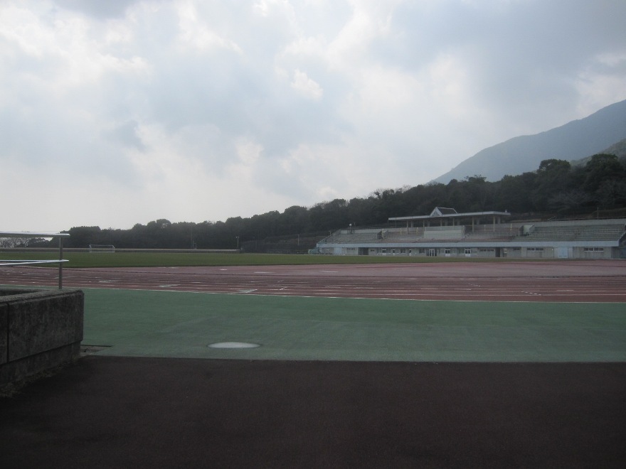 15時から練習試合があるから、午前中は軽く練習でもするんだろうと勝手に予測を立てて、取りあえず島原陸上競技場へ到着してみたが、あれれ、だーれもいないや。そーか、当日移動なんだな。