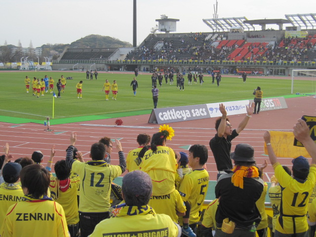どちらの国の方かなー、多国籍軍っぽいなー、留学生かなー、ラテン系なのかすごくノリがいいなー、なんて気を取られていたら、いきなり失点した。おいおい、始まったばかりだぞ。って、試合に集中できていなかったおいらが言うセリフじゃないわな。残り90分、精いっぱい応援するから頑張ってくれ。