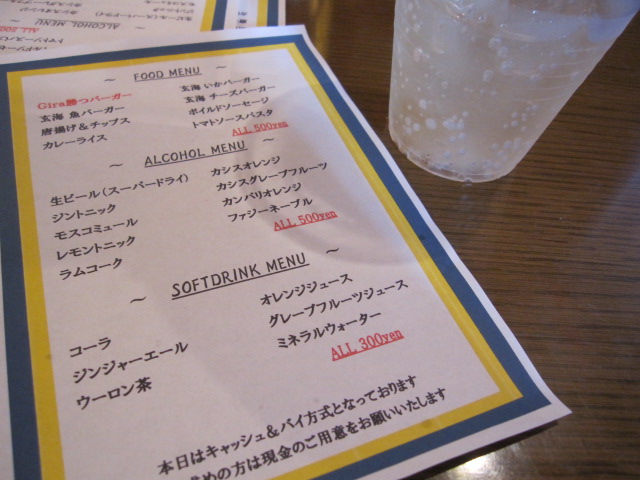「ギラギラ」は初訪店。昼間は基本的にランチを提供しているんだが、ギラヴァンツ北九州のゲームを中継中は、スポーツバー形式でワンドリンク制。フードはカレーなどの軽食メニューだけになる。労働前なので、ビールを飲みたい気分をぐっと抑えて、ジンジャーエール300円で我慢。