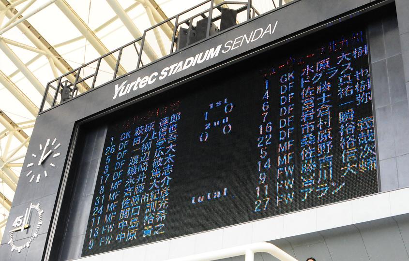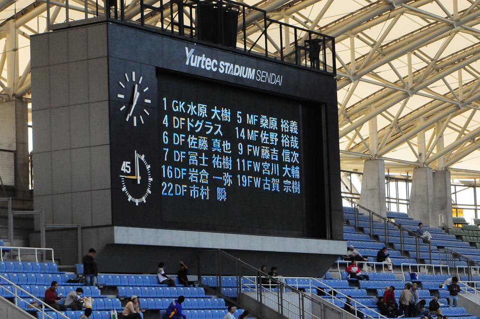 が、そのちょっとしたきっかけがやってきたのは仙台の方であった。20分、自陣左の深い所からクロスを入れられた。DFが体に当てたが、これがまずい具合に、ゴール前にポテンポテン。相手FWが鋭く振り抜いた低いボールは、GK水原の左手をすり抜けてゴールへ。先制点を献上。