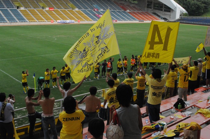 その後は一進一退。その中、藤吉が交代。日高が入る。ベガルタサポの大きな拍手を受けて退く藤吉。勝敗云々を超えた、スポーツを愛する心があるからこその心温まる情景。スポーツの素晴らしさはここにある。もちろん、わが北九州にもそんな素晴らしい要素がふんだんにあるし、年間を通じてゲームを見ていれば、心が動かされるさまざまなシーンが盛りだくさんなんだが、なんで客が入らんのかいな。もったいない。